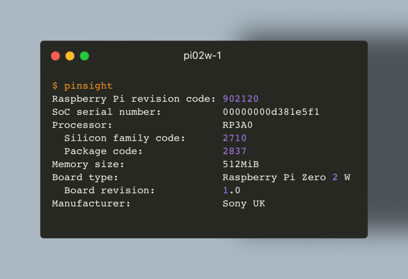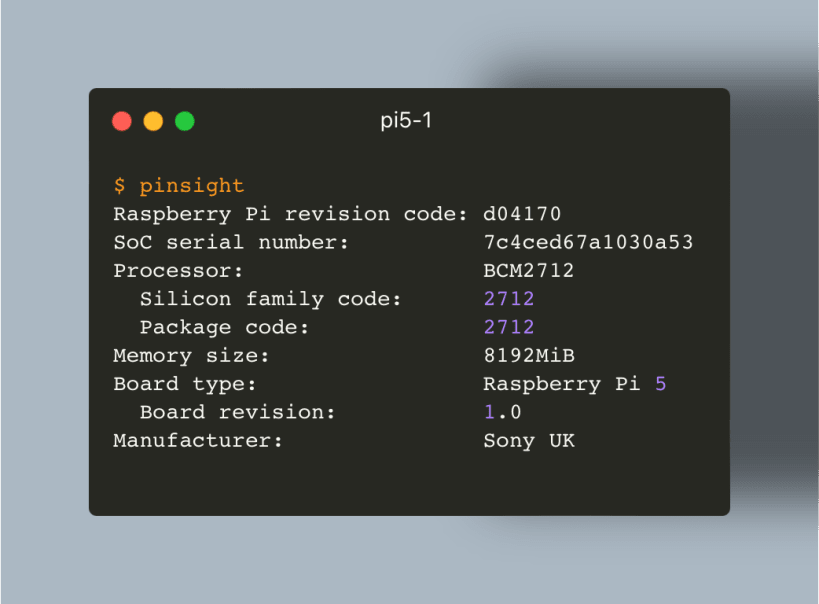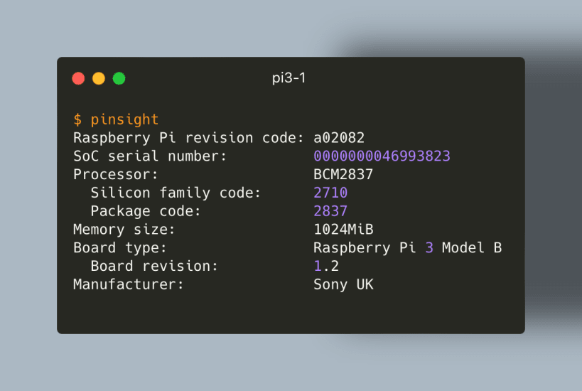 Pinsight, or Pi-insight is a simple utility for displaying basic information about Raspberry Pi hardware. The application runs on any Pi computer and can provide information about the board, processor and available memory.