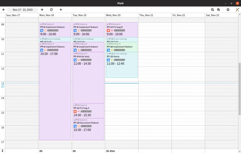 Plaid lets you get a better overview of your Jira worklog. Add, edit and remove your worklog entries, which are neatly laid out on a calendar. Works both with Jira Server and Jira Cloud.