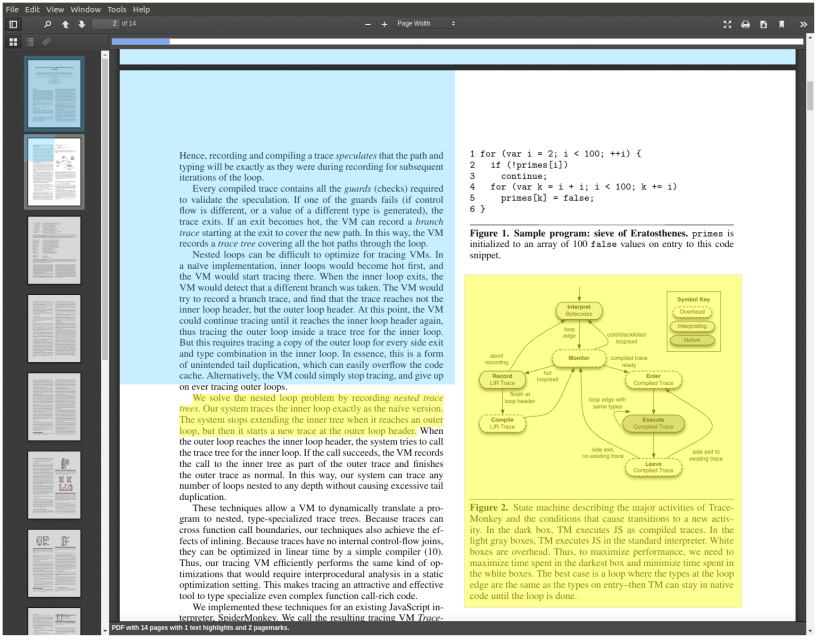 Pagemarks: Easily keep track of what you're reading and the progress of each document. Pagemarks enable a form of non-linear reading named incremental reading and the ability to suspend and resume individual documents for later consumption.