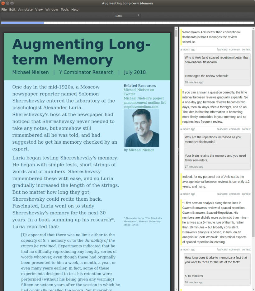 Annotations are a central feature to POLAR. While reading documents you can underline text or create area highlights. Once created, you can attach additional metadata to annotations such as comments and flashcards.