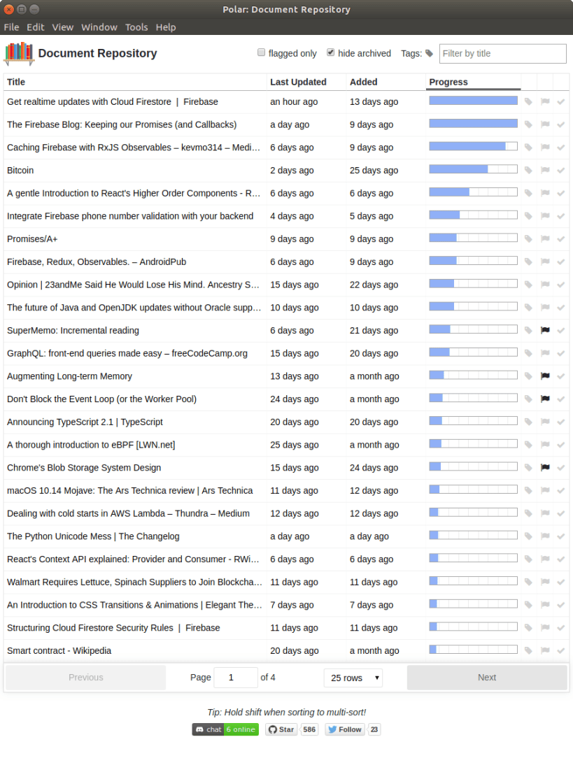 The document repository allows you to manage your documents in one place - sort by reading progress, or time added, archive and filter flagged documents.