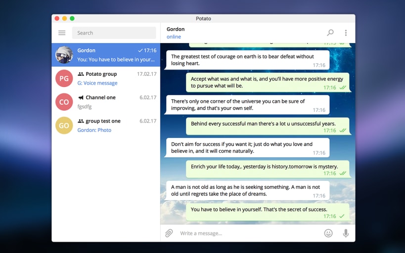 Potato is an instant messaging tool focused on security. It is faster, safer, more open and completely free.