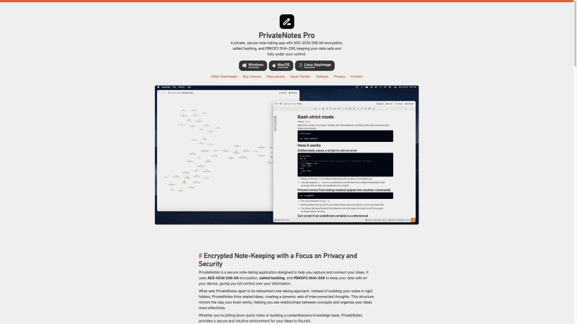 PrivateNotes is a secure note-taking application designed to help you capture and connect your ideas. It uses AES-GCM 256-bit encryption, salted hashing, and PBKDF2 SHA-256 to keep your data safe on your device, giving you full control over your information.