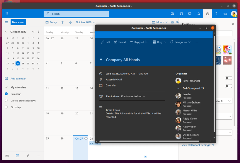 Unofficial email Outlook client using Electron. It uses the Web App and wraps it as a standalone application using Electron.