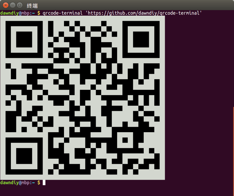 Usage: $ qrcode-terminal --help $ qrcode-terminal 'https://github.com/dawndiy/qrcode-terminal' $ qrcode-terminal -b white -f magenta 'I Love You'