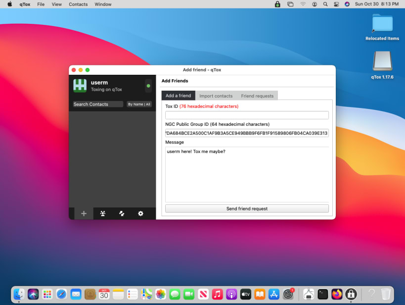 With the rise of government monitoring programs, qTox provides an easy to use application that allows you to connect with friends and family without anyone else listening in. While other big-name services require you to pay for features, qTox is totally free, and comes without advertising. Nowadays, every government seems to be interested in what we're saying online. qTox is built on a "privacy goes first" agenda, and we make no compromises. Your safety is our top priority, and there isn't anything in the world that will change that. Instant messaging, video conferencing, and more.