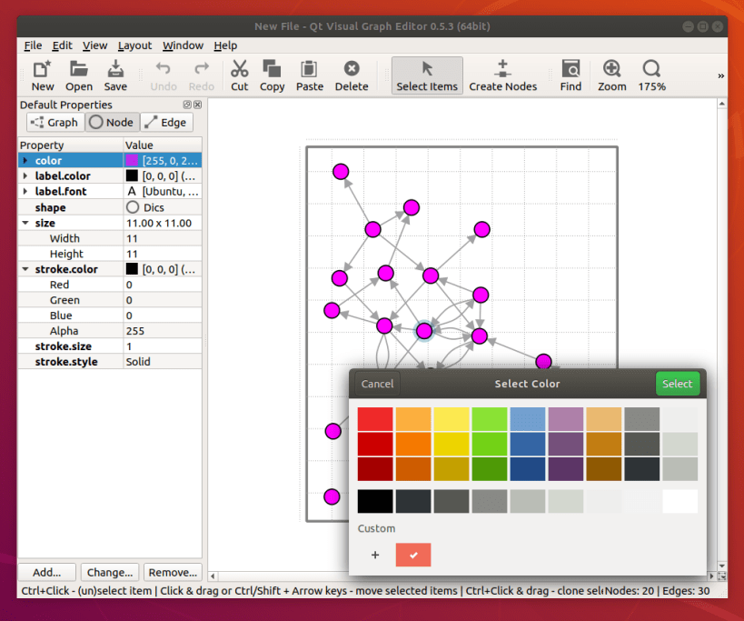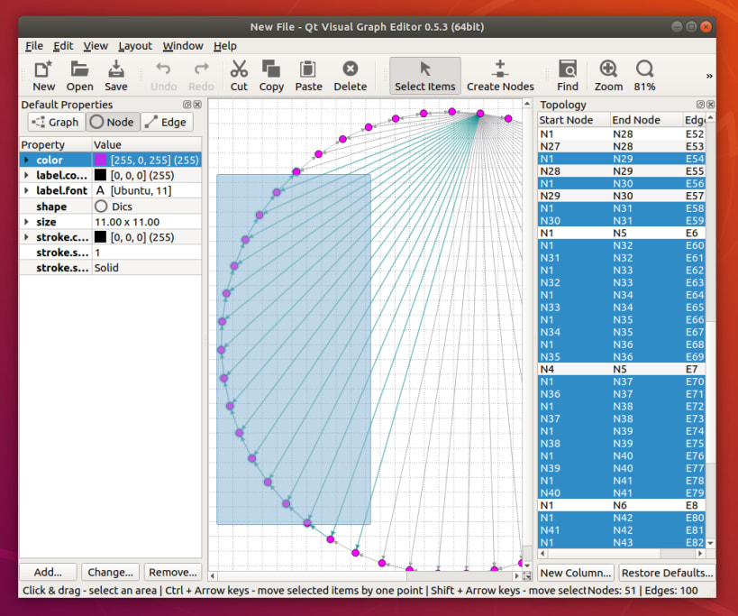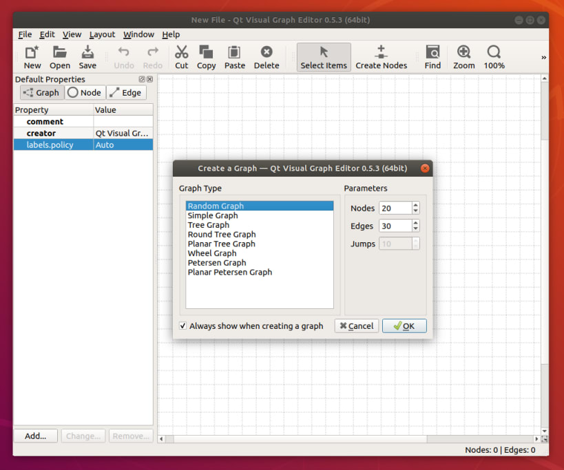 qvge is a multi-platform graph editor written in C++/Qt. Its main goal is to make it possible to visually edit two-dimensional graphs in a simple and intuitive way.
