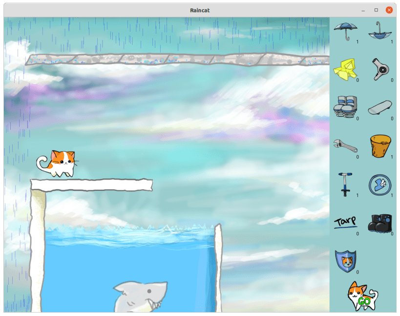 Raincat is a 2d puzzle game similar to the Incredible Machine and Lemmings series. Your goal is simple: guide the cat safe and dry to the end of each level. Just mind the rain, puddles, and loose fire hydrants in your path!