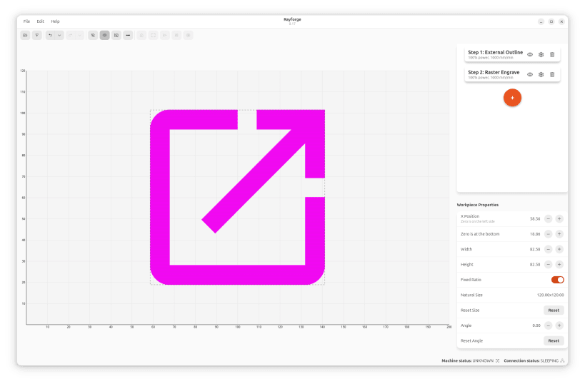 Rayforge is a desktop application for laser cutting and engraving. It provides an intuitive interface to create and manage laser cutting projects. Rayforge support communicating with GRBL based laser cutters. Rayforge supports importing SVG, DXF, PDF, and PNGs, and provides advanced features such as multi step jobs, automatic path optimization, interpolation based on laser dot size, and much more.