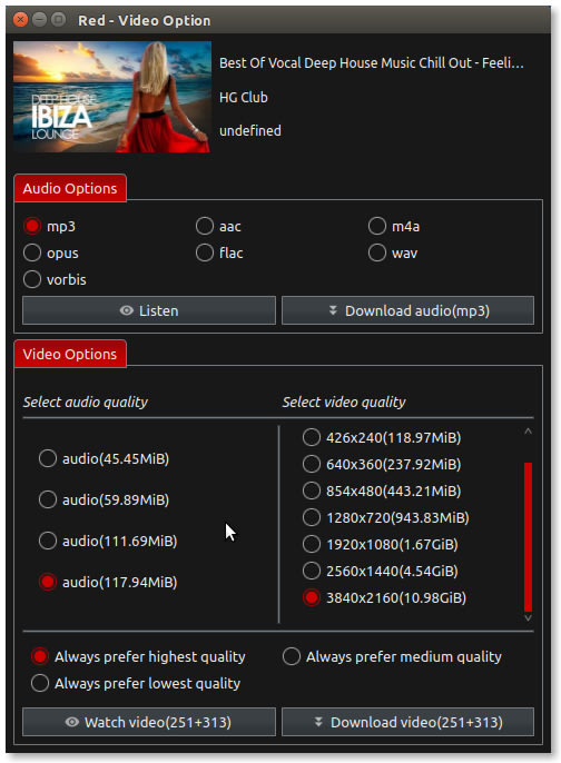 - Red allows you download Video with your preferred audio and video quality and in their different combinations.