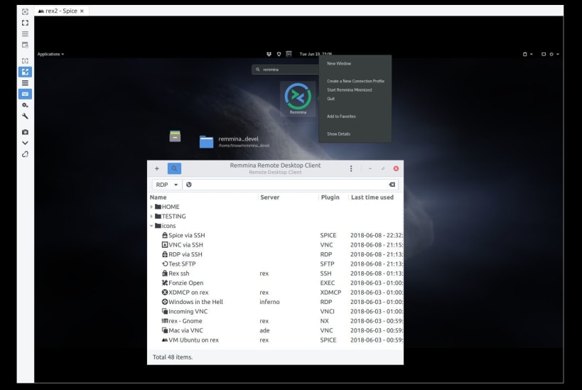Remmina supports multiple network protocols in an integrated and consistent user interface.