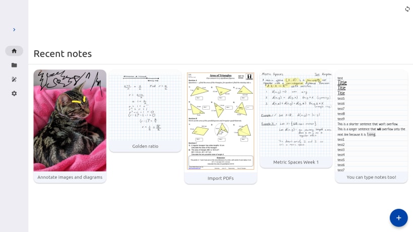 Saber has everything you need to keep your notes organized. Create folders inside folders inside folders to your heart's content with no limit on the number of nested folders. And even though a note may be buried deep within a nested folder, you can still access it easily with your most recent notes always available on the home screen.