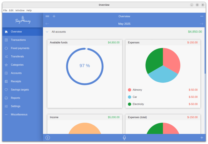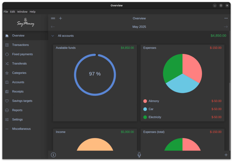 SayMoney is a professional and innovative personal finance tracker and budget planner tool helping you to understand, analyse and visualise your spending habits.