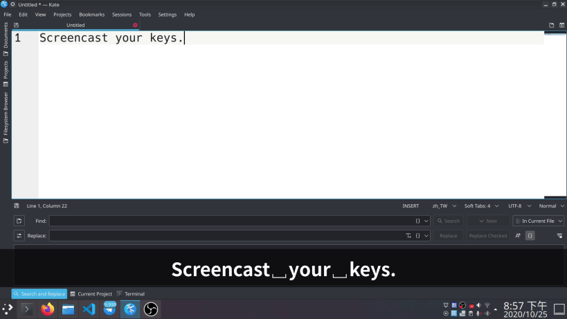 This is an almost-complete rewrite of [screenkey](https://launchpad.net/screenkey) 0.2, featuring: