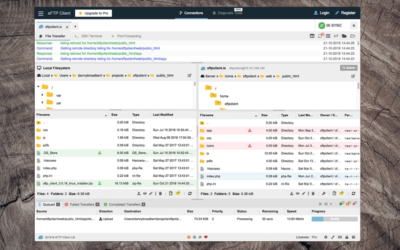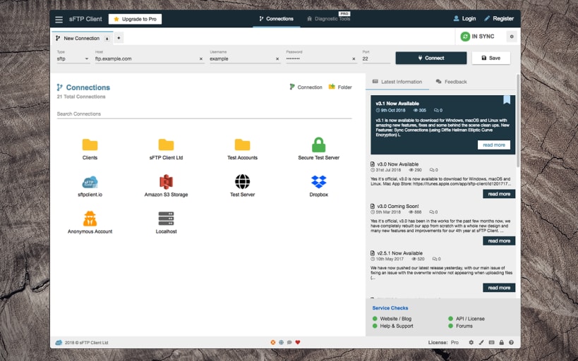 - Connect to Remote (External) & Local (Internal) FTP / SFTP / SSH servers.