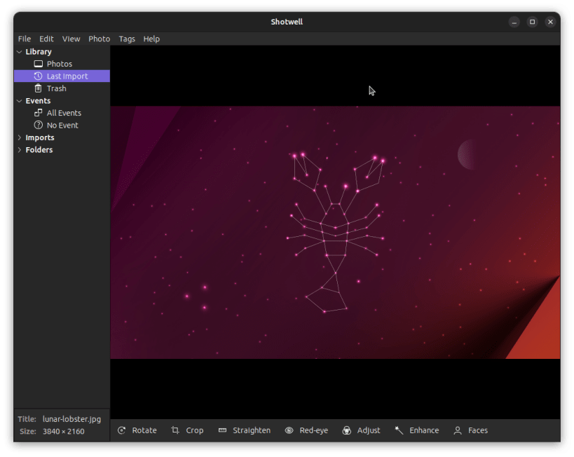 Shotwell is an easy-to-use, fast photo organizer designed for the GNOME desktop. It allows you to import photos from your camera or disk, organize them by date and subject matter, even ratings. It also offers basic photo editing, like crop, red-eye correction, color adjustments, and straighten. Shotwell’s non-destructive photo editor does not alter your master photos, making it easy to experiment and correct errors.