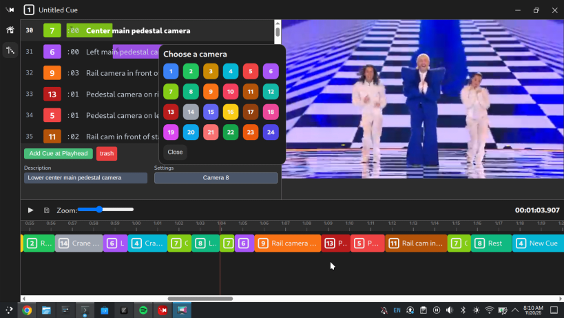 Live TV show cue recreation software.