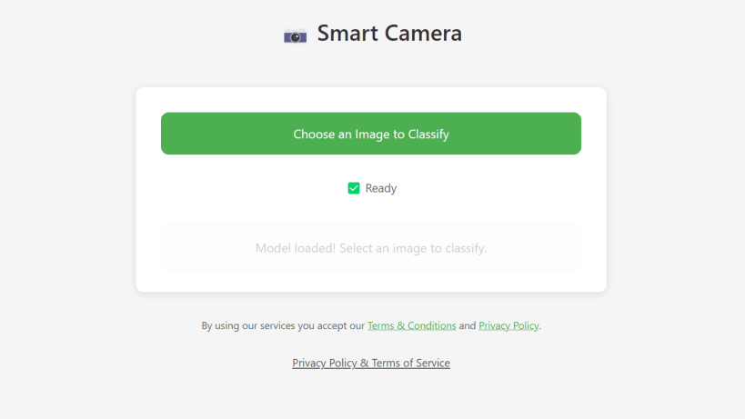 📸 Smart Camera – AI Image Identifier Smart Camera is a smart, lightweight image classifier web app built using MobileNet's general recognition model. It is available as a Progressive Web App (PWA) and also as an Android app on the Google Play Store.