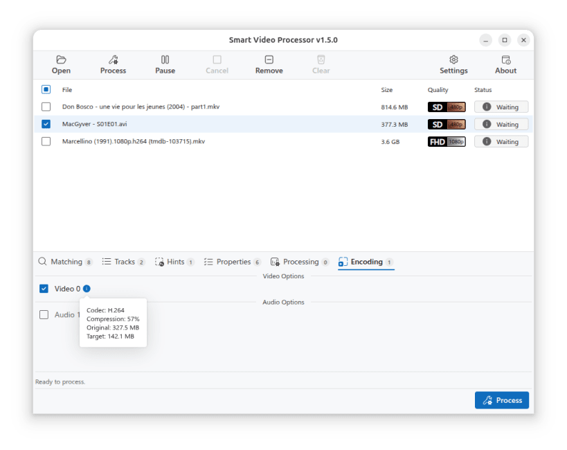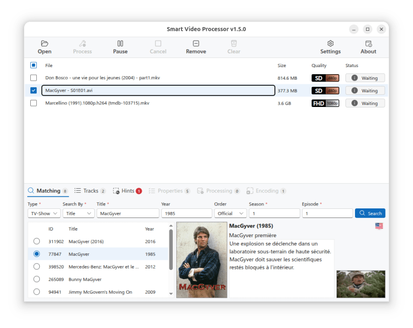 This tool automatically identifies your movies and TV shows using popular databases, then streamlines the entire process: rename files using Plex-friendly conventions, attach artwork, correct metadata (including track language and type), split or join media files and encode to H.264 or H.265—all in one place.