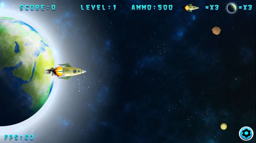 Protect The Earth from asteroids and small planets as long as posible. Use your mouse to move and shooting. In each level you have of ammo which increases the number of hits, get the extra score and ammo at the end of the level. The Game has a bonus: Three types of your spaceship, three types of lase, protection spaceship, life improvements.
