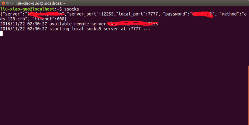 $ sudo snap set ssocks server=shadowsocks_server_ip serverport=12255 localport=7777 password=yourpassword method=aes-128-cfb timeout=600