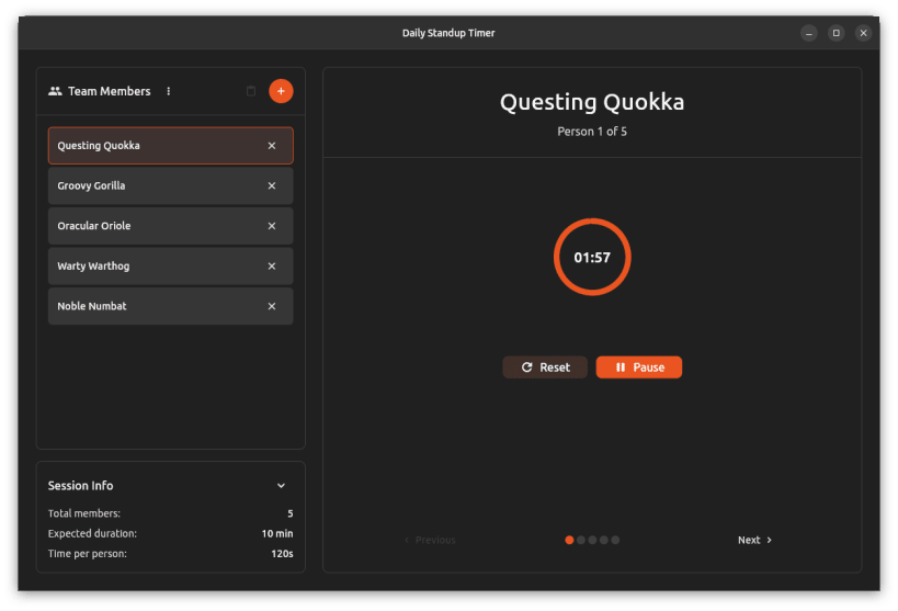 A lightweight Flutter desktop application that helps run efficient stand-up or daily-scrum meetings.