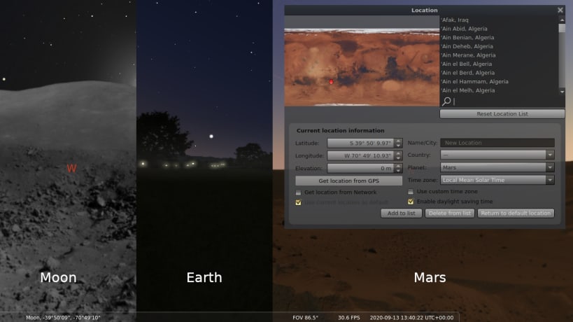 It is also possible to visit other planets in the solar system - see what the sky looked like to the Apollo astronauts, or what the rings of Saturn looks like from Titan.