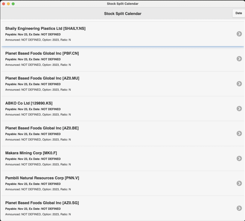 This app helps you identify when the pending splits will occur. Also has a historical feature where you look at previous years splits.