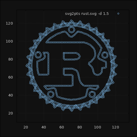 with no stroke nor fill are ignored. Output is a sequence of points, X Y\n