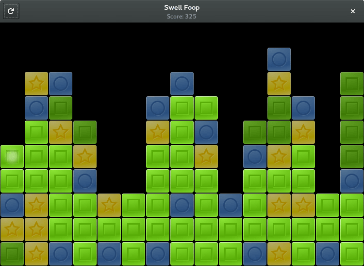 Remove as many squares as possible from the board. Click on a group of squares of the same color to make them all disappear in one fell swoop, causing other squares to fall into place. It is not possible to remove a single square at a time. You get far more points for clearing a larger group of squares, and also for clearing the entire board.