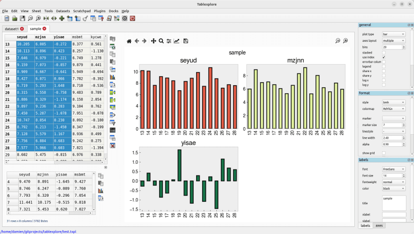 Tablexplore is an open source desktop application for data analysis and plotting intended for use in both research and education. The program allows quick visualization of data, table manipulation tools and supports large data tables.