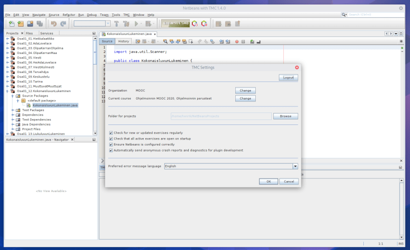 TMCBeans is a customized version of the NetBeans IDE intended to be used with the Test My Code -system. The Test My Code -system provides automatic assignment evaluation for MOOC-courses found at mooc.fi. The system and most of the courses are created by the University of Helsinki.