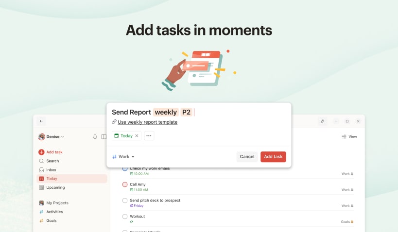 • Use the global quick add shortcut to capture ideas and tasks the moment they strike — even if you are in a different app.