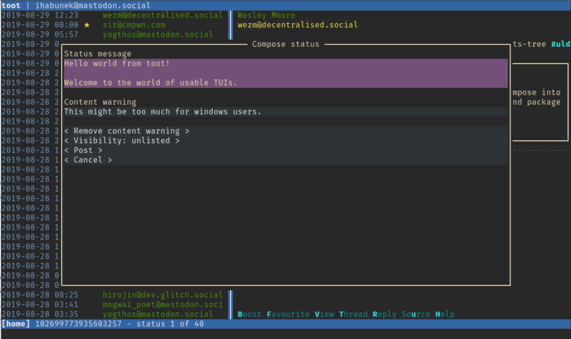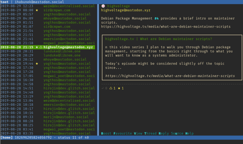 Interact with Mastodon social network from the command line.