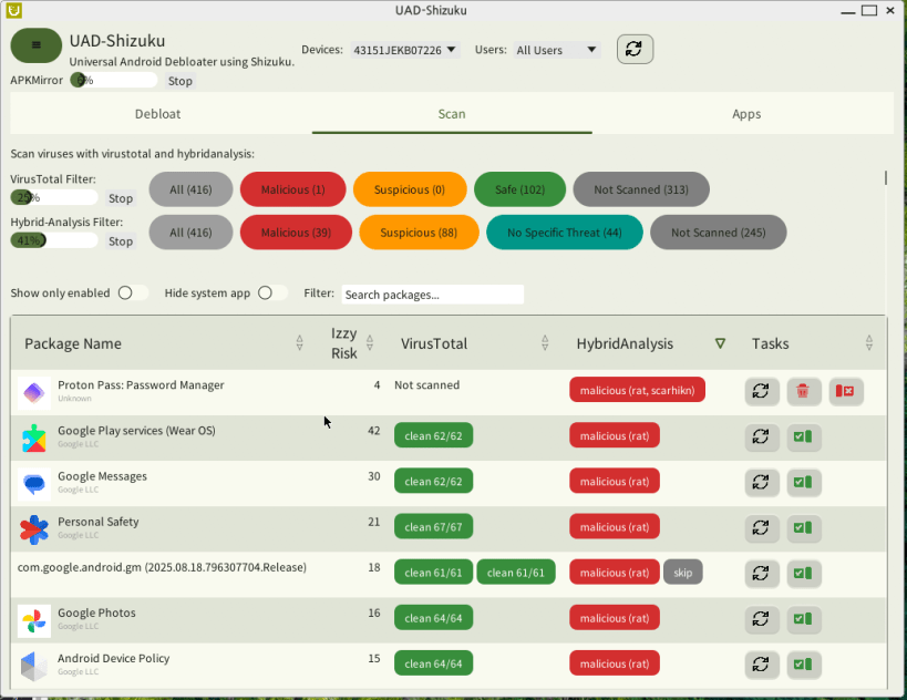 UAD-SHIZUKU is application for remove bloat app selectively, get sha256sum of installed foss android apps and install foss apps selectively.