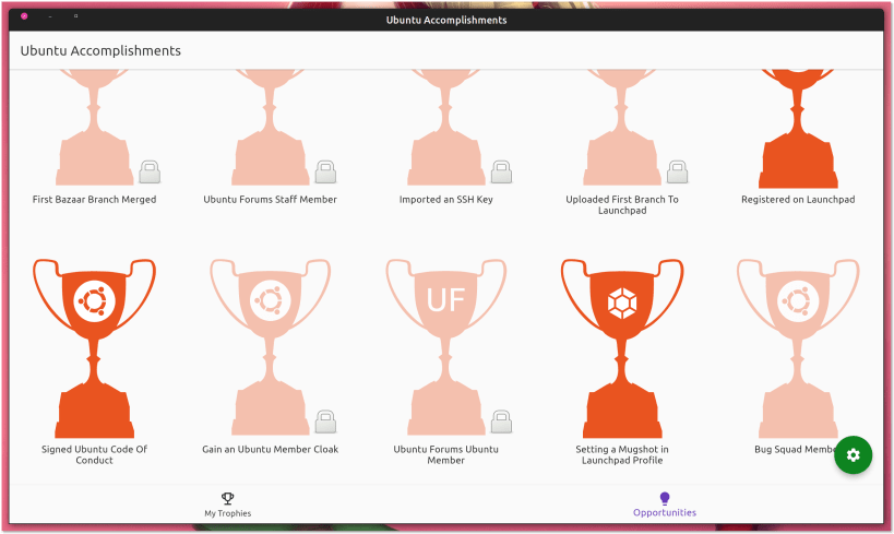 The Ubuntu Accomplishments system provides a simple, cohesive way to browse different opportunities in the Ubuntu community and beyond, find out how to participate and accomplish them, and see different accomplishments in one place.