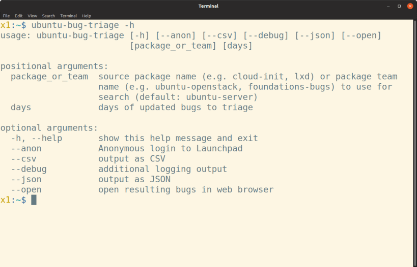Users can further define the number of days to triage to increase the number of bugs found, the output type to allow machine readable output, or set the behavior to open the bugs in a browser and immediately begin bug triage.