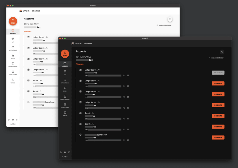 Umami is a cryptocurrency wallet to interact with the Tezos Blockchain. It runs as a desktop electron based app with multiple features: