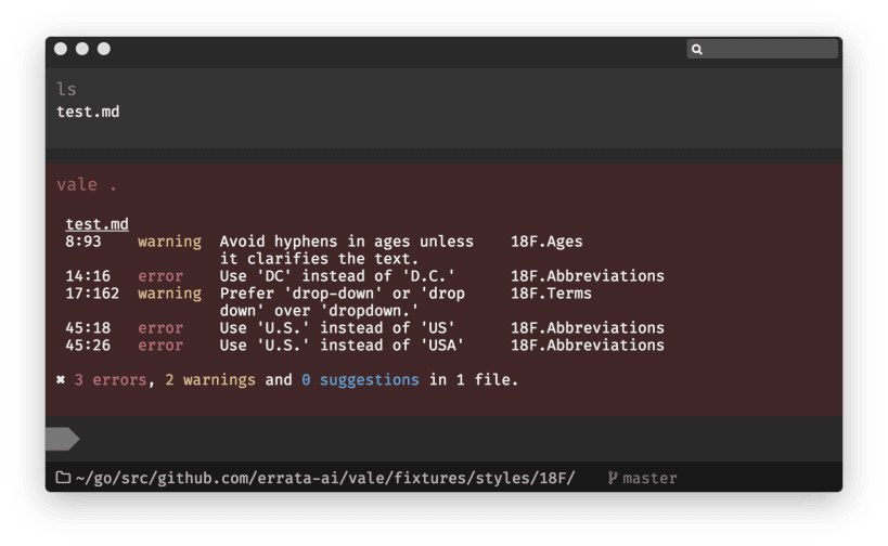 Vale is a command-line tool that brings code-like linting to prose. It's fast, cross-platform, and highly customizable.