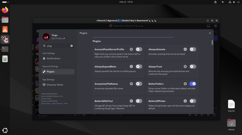 Vesktop comes with Vencord out of the box, allowing you to customize your Discord experience with many powerful plugins and themes.
