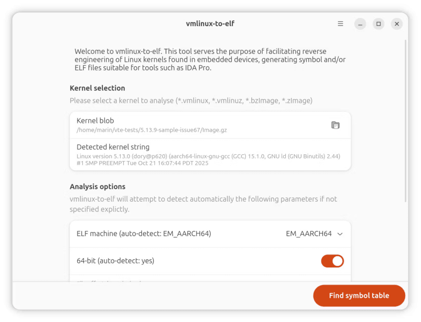 sudo snap install vmlinux-to-elf