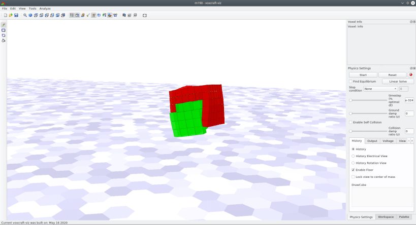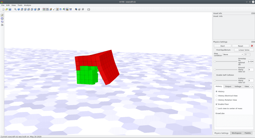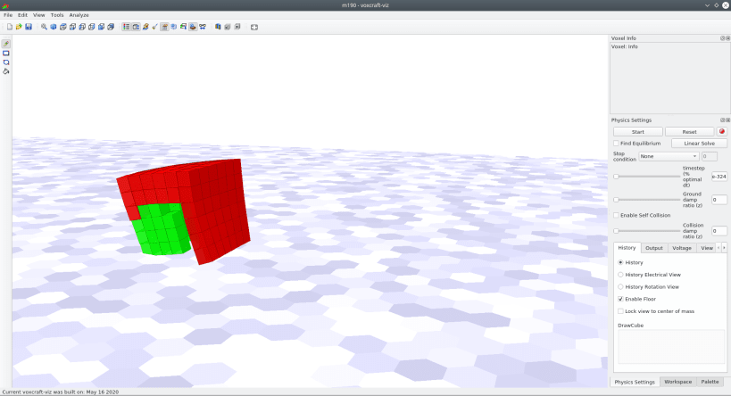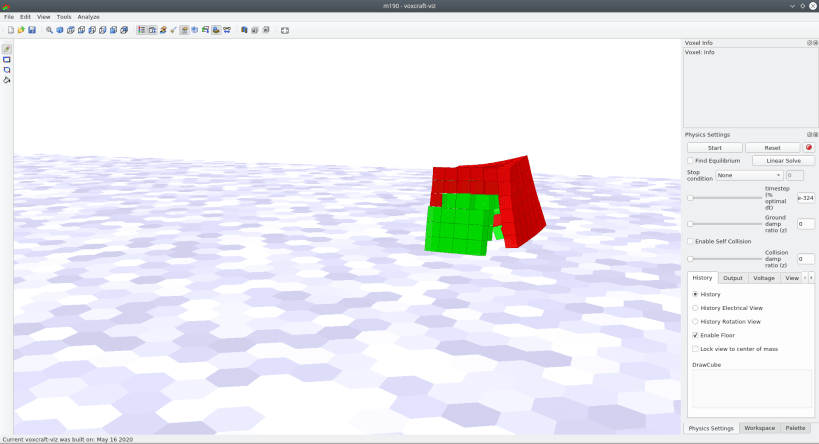 voxcraft-viz: The visualization tool that can playback the history file produced by voxcraft-sim, and it can used for manually design bots and run it in a CPU-based physics engine.