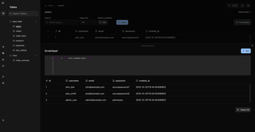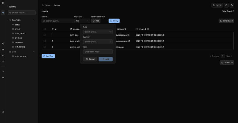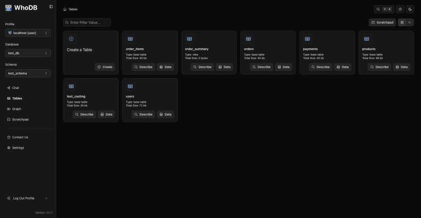 WhoDB is a lightweight, next-generation database management tool for developers and database administrators. It provides an intuitive interface for managing multiple database types including PostgreSQL, MySQL, SQLite, MongoDB, Redis, and more.