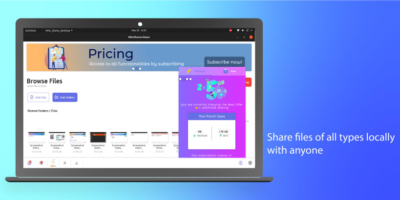 A super fast and robust desktop app to share files, without any internet needed and across all desktop and mobile plaforms. head to https://www.whoshares.hooreo.com for more infos