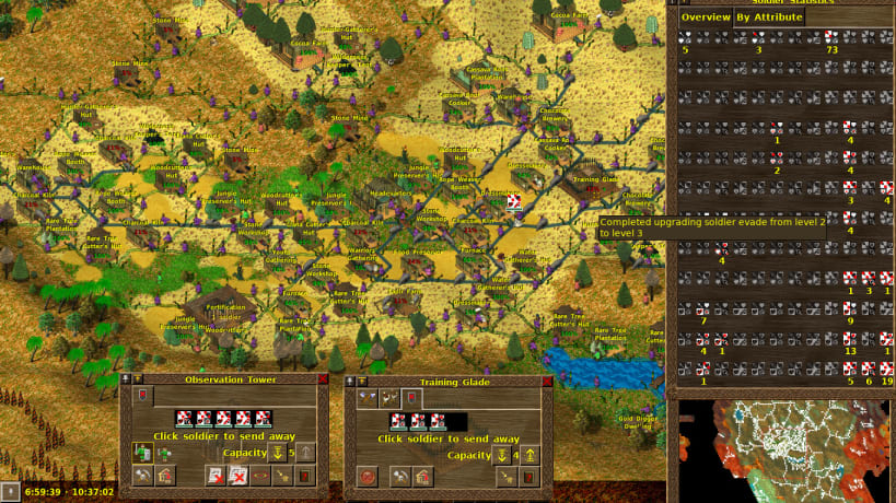 Widelands offers a single-player mode with campaigns that tell stories of the tribes and their struggle in the Widelands universe. However, settling really starts when you unite with friends over the Internet or LAN to build up new empires together – or to crush each other in the dusts of war. Widelands also offers an artificial intelligence to challenge you.
