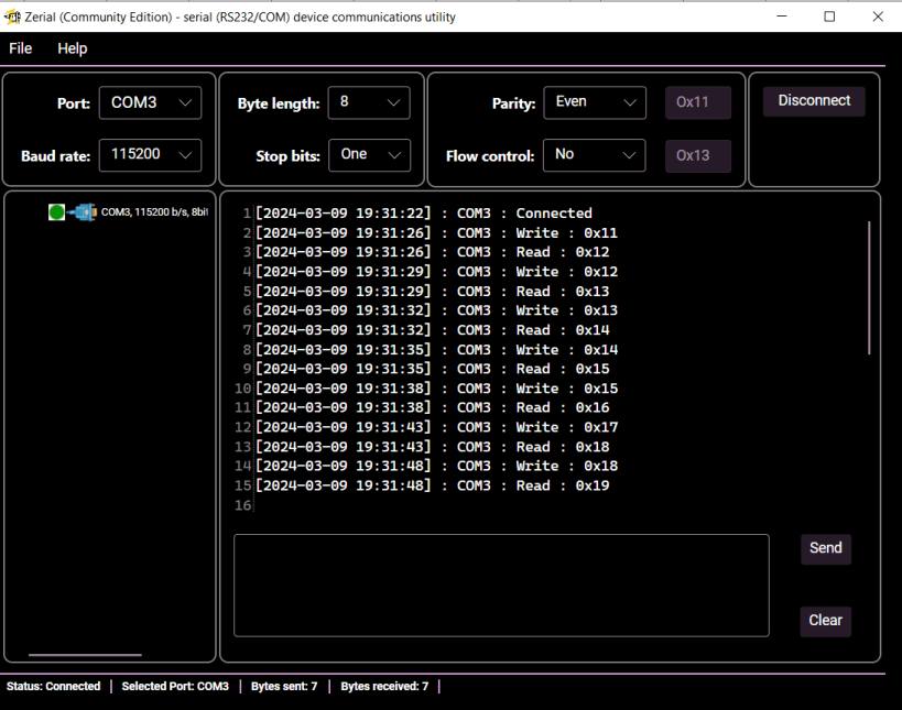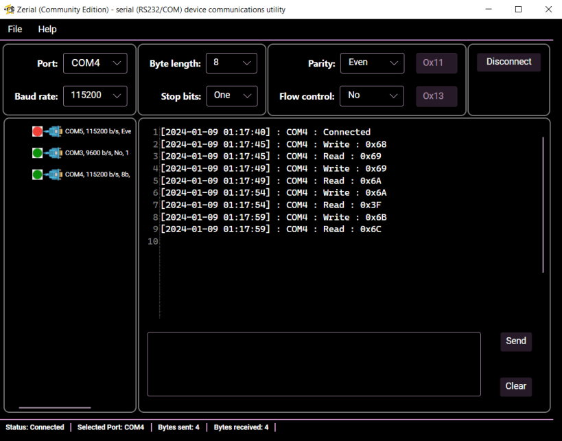 Zerial is a utility that allows to develop/test hardware and interact with it from our general software in binary mode. Zerial was built with Avalonia and Net6 and published as a self-contained application; therefore, it doesn't need dotnet to be installed. Due to that, it has a size of around 100 MB. But unlike of Electron and Python applications, it utilizes resources carefully. Zerial has the following main advantages: