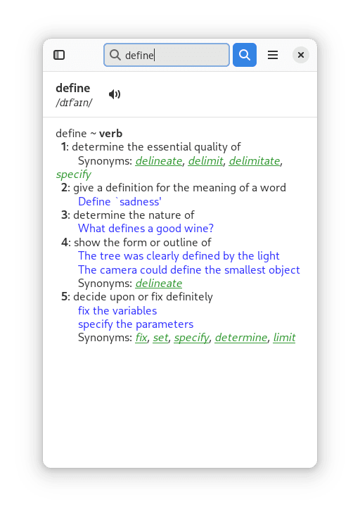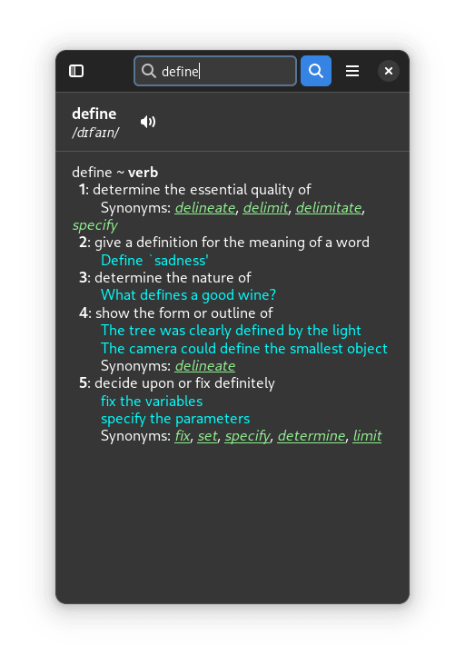 Wordbook is an offline English-English dictionary application powered by WordNet and eSpeak.