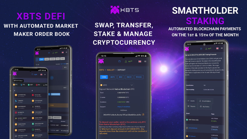 CryptoHolders trying to maximize gains, or a frequent trader who wants to take a break from trading, can use the XBTS Dex tools and gain up to 50 % of the trade profit by the SmartHolder program and increase the balance of Bitcoins and Altcoins regardless of how the market moves.