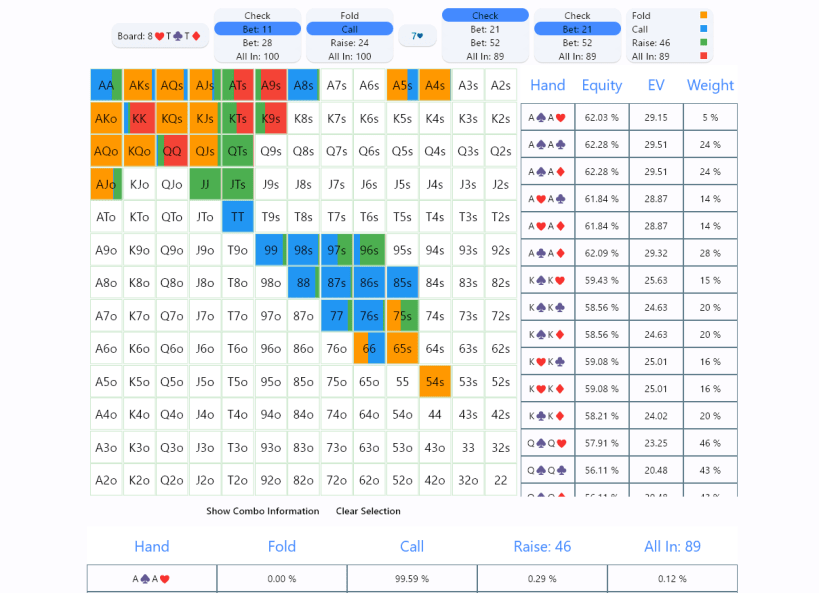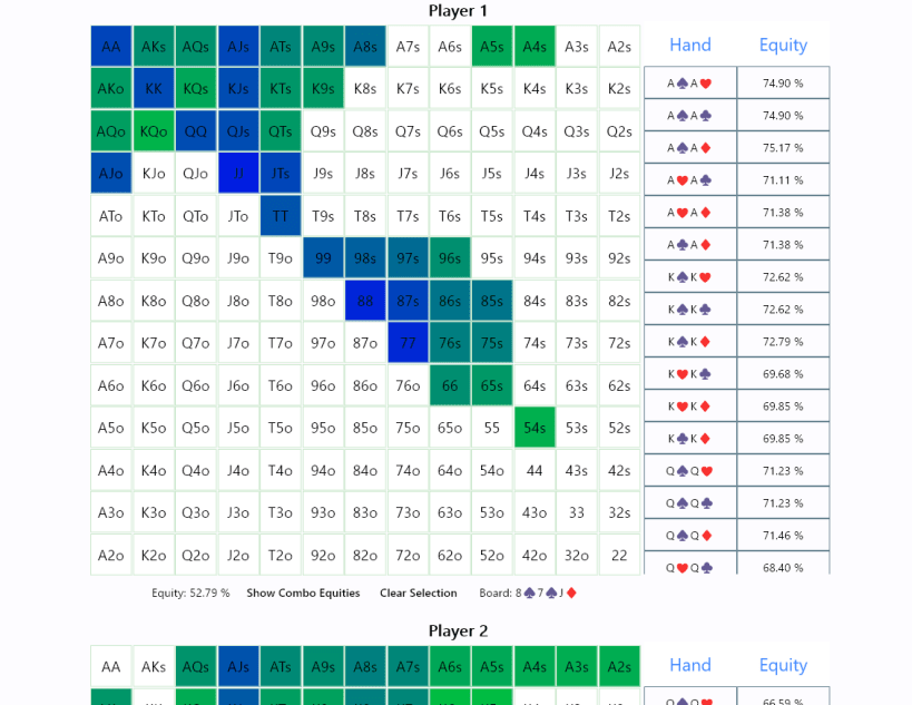 Tool to improve you Texas Hold'em game by giving insights on different spots. It features an odds calculator, a range builder and a GTO solver. For a more in depth guide visit https://guide.xeopoker.com