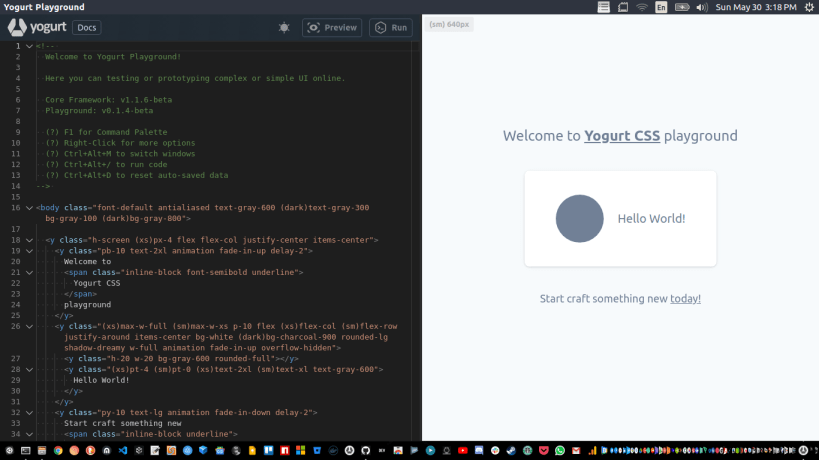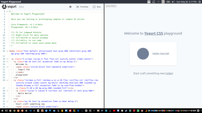 A developer playground IDE for testing and prototyping with Yogurt CSS framework.